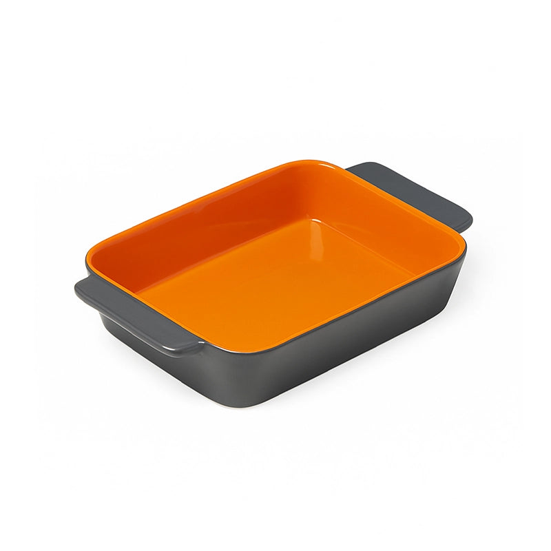 طاجن بورسلين بلون برتقالي دافئ من الداخل ورمادي غامق أنيق من الخارج