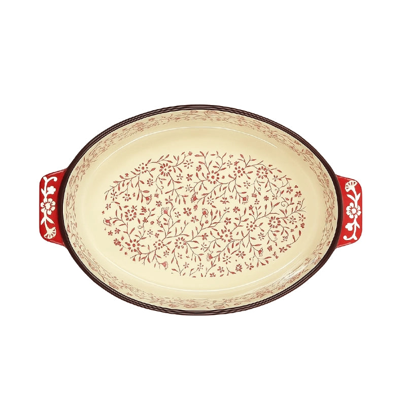 طاجن بورسلين بيضاوي وسط بنقش وردي