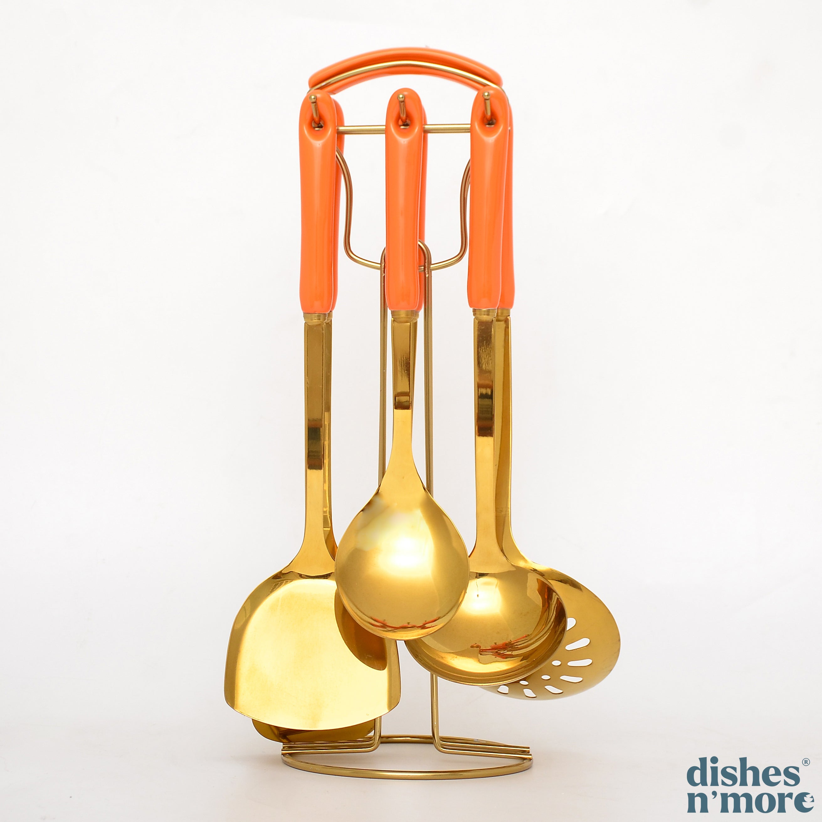 طقم أدوات مطبخ مكون من 6 قطع من الفولاذ المقاوم للصدأ مع حامل معدني
