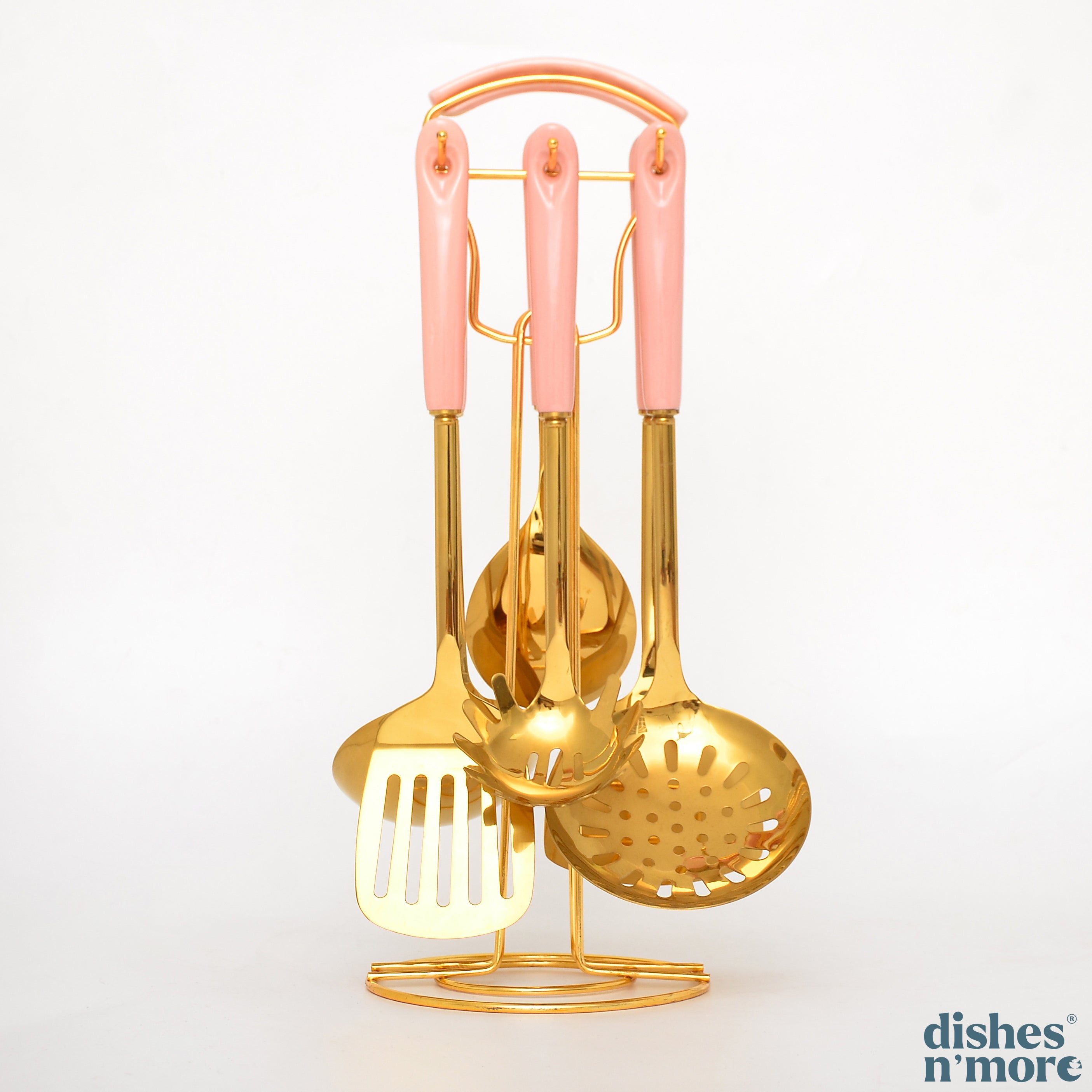 طقم أدوات مطبخ مكون من 6 قطع من الفولاذ المقاوم للصدأ مع حامل معدني