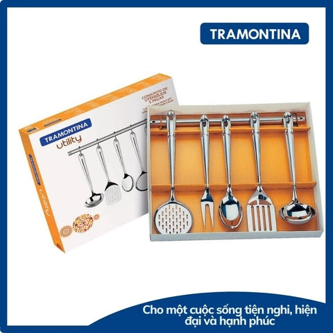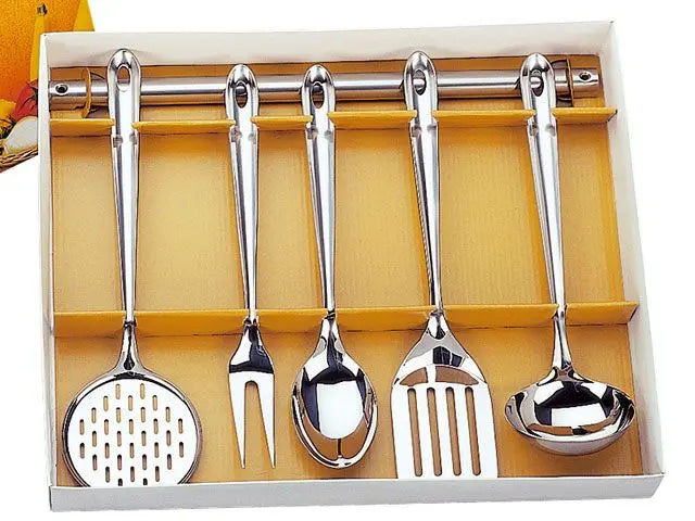 طقم أدوات مطبخ مكون من 5 قطع من الفولاذ المقاوم للصدأ مع حامل معدني من TROMANTINA