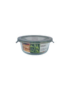 علبة حفظ طعام زجاجية دائرية سعة 635 مل بغطاء بلاستيك (PP)