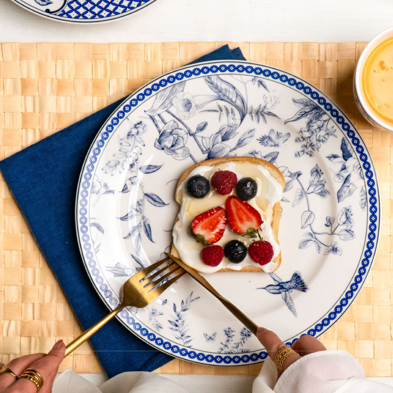 ٣٨ قطعة بتصميم هادئ مستوحى من الطبيعة، يجمع بين التفاصيل الرقيقة واللمسات الفنية الراقية، مصنوع من خامات البورسلين الفاخرة، وآمن للاستخدام في غسالة الأطباق والميكروويف، ليمنحك تجربة يومية تنبض بالأناق