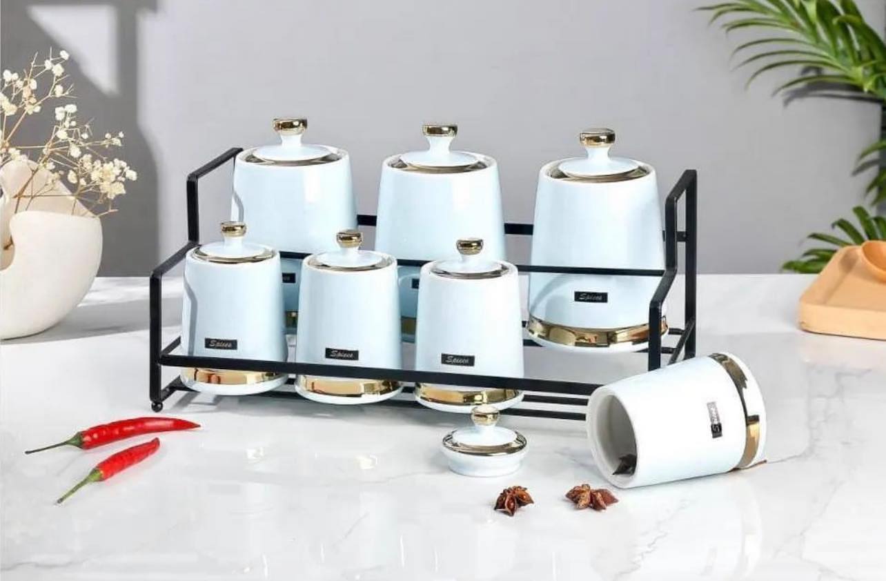 طقم توابل بورسلين 7 قطعة أزرق فاتح