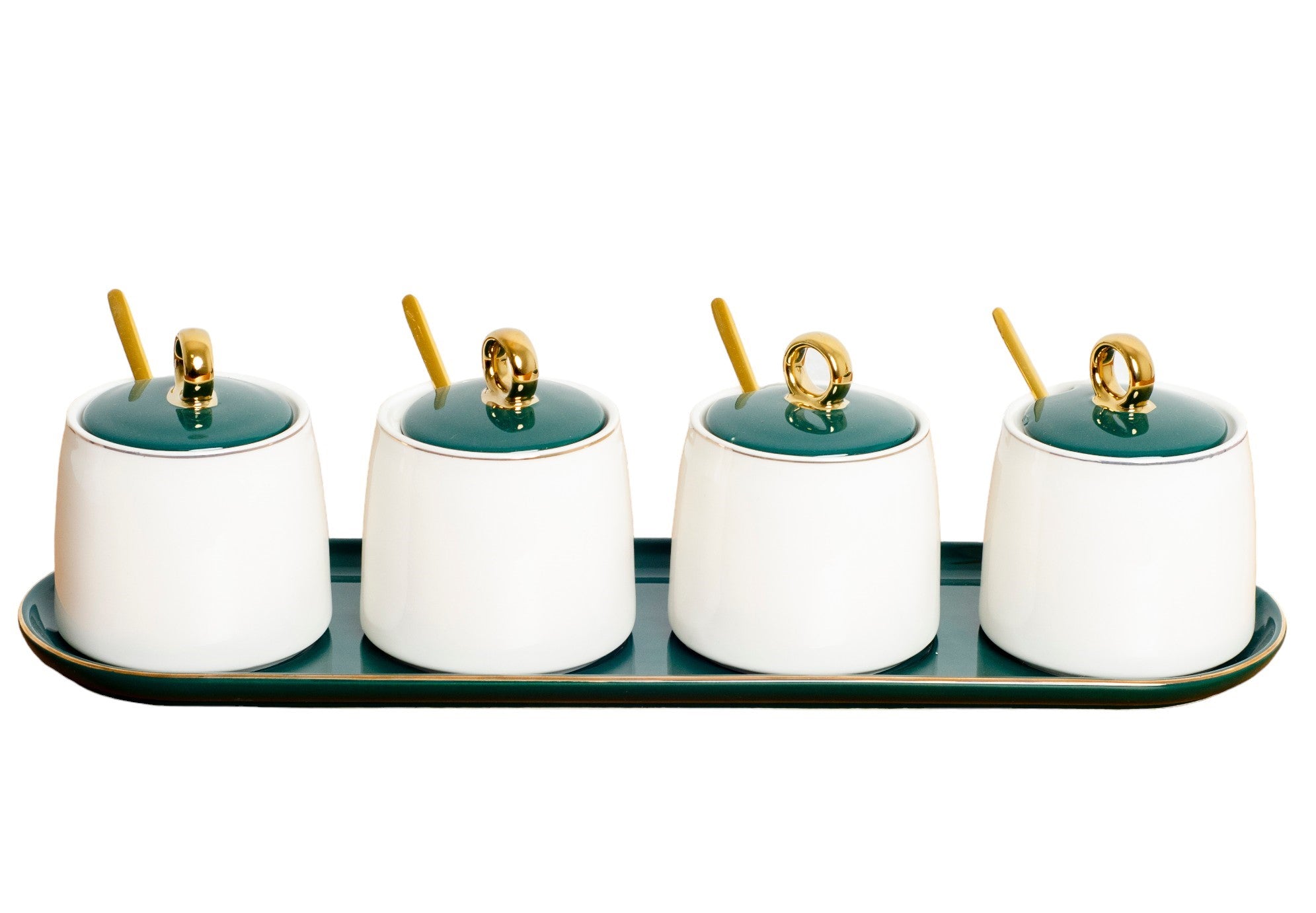 طقم توابل 4 قطع بالغطاء و الصينية مع 4 معالق
