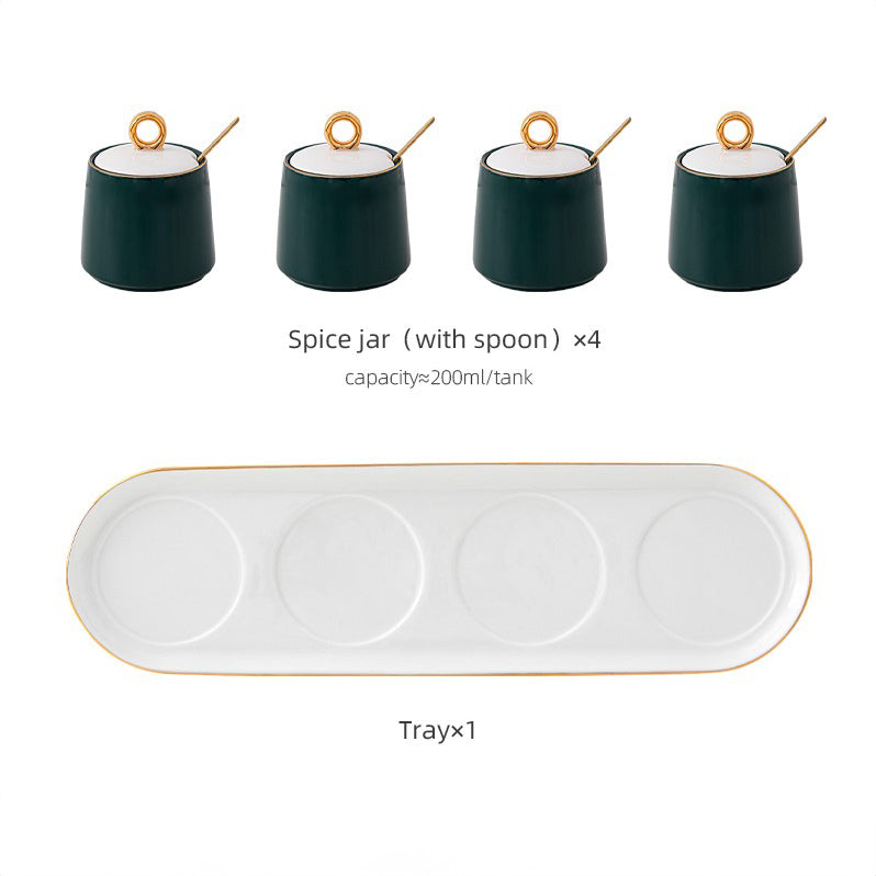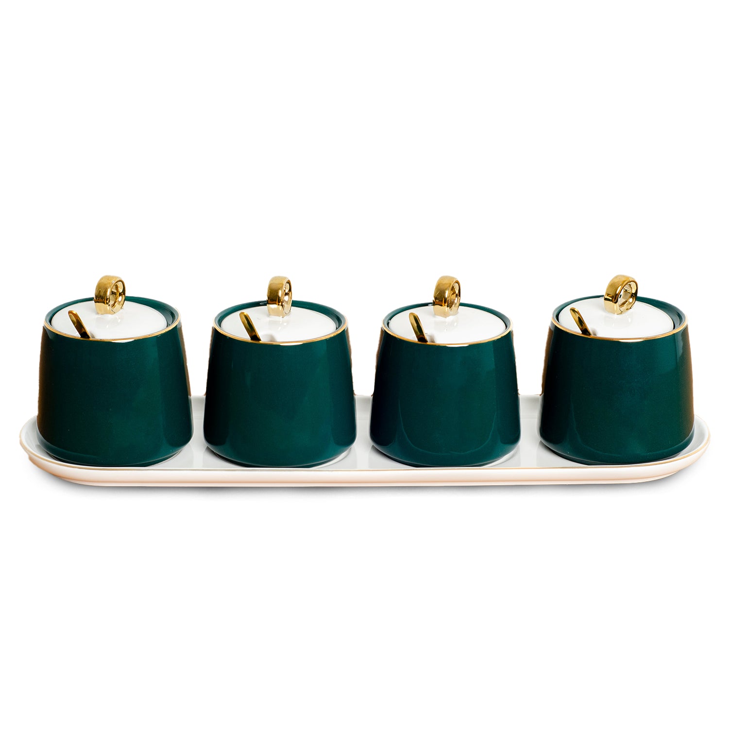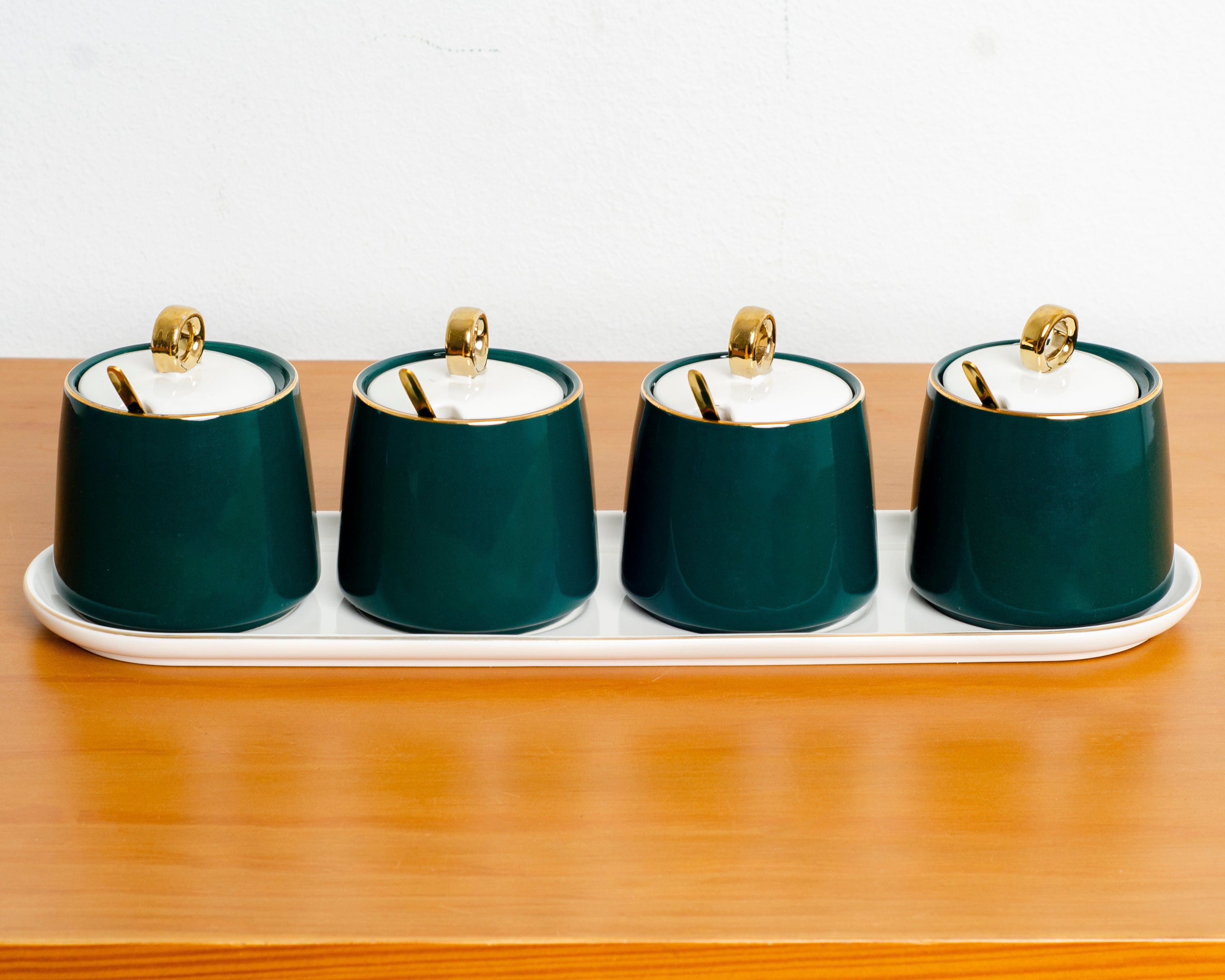 طقم توابل 4 قطع بالغطاء و الصينية مع 4 معالق
