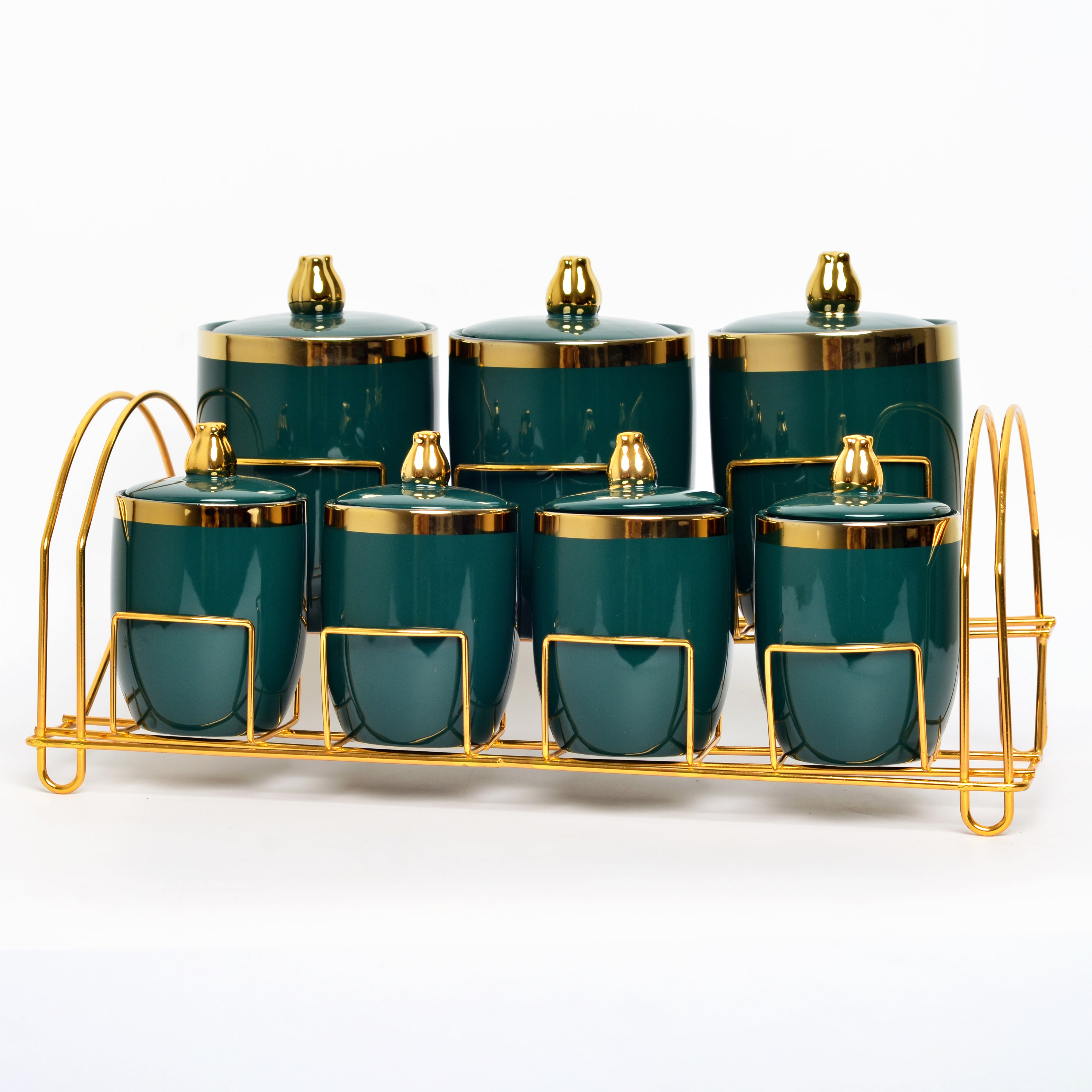 طقم توابل لون أخضر استاند ذهبي
