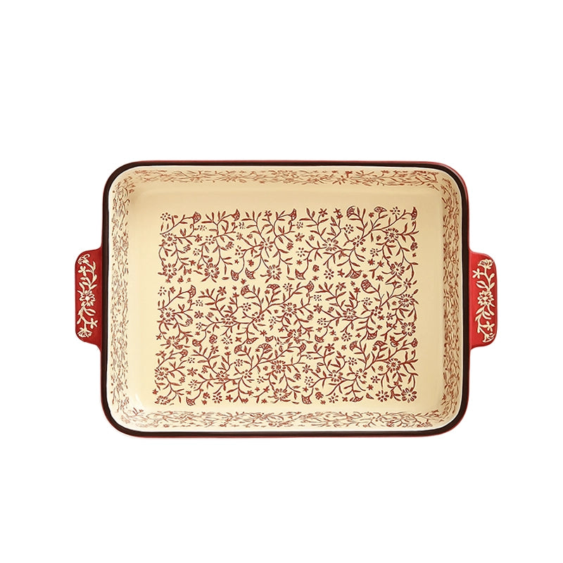 طاجن بورسلين مستطيل صغير بنقش وردي