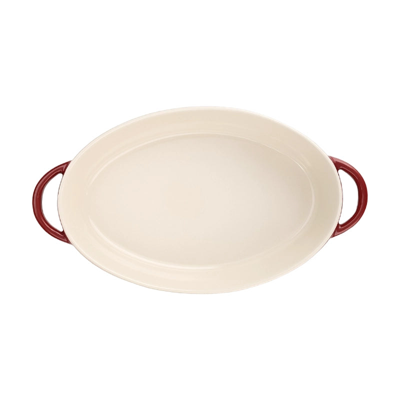 طاجن بورسلين بيضاوي كبير بلون احمر وابيض