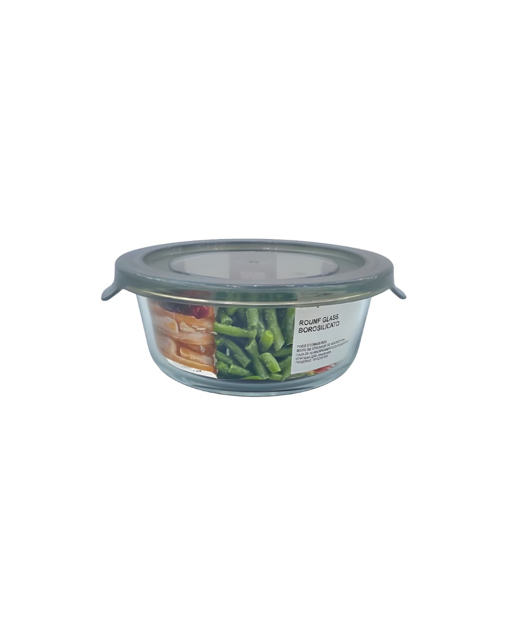 علبة حفظ طعام زجاجية دائرية سعة 370 مل بغطاء بلاستيك (PP)