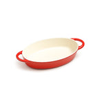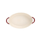 طاجن بورسلين بيضاوي صغير بلون احمر وابيض