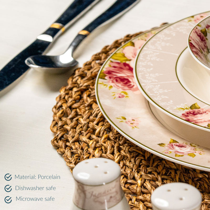 طقم العشاء المبهج من ديشز آند مور، يأتيك بـ ٣٨ قطعة فنية بتصميم مبتكر وألوان نابضة مستوحاة من بهجة الطبيعة .. مصنوع من بورسلين عالي الجودة، وآمن للاستخدام في غسالة الأطباق والميكروويف، ليمنحك الأناقة في كل عشاء