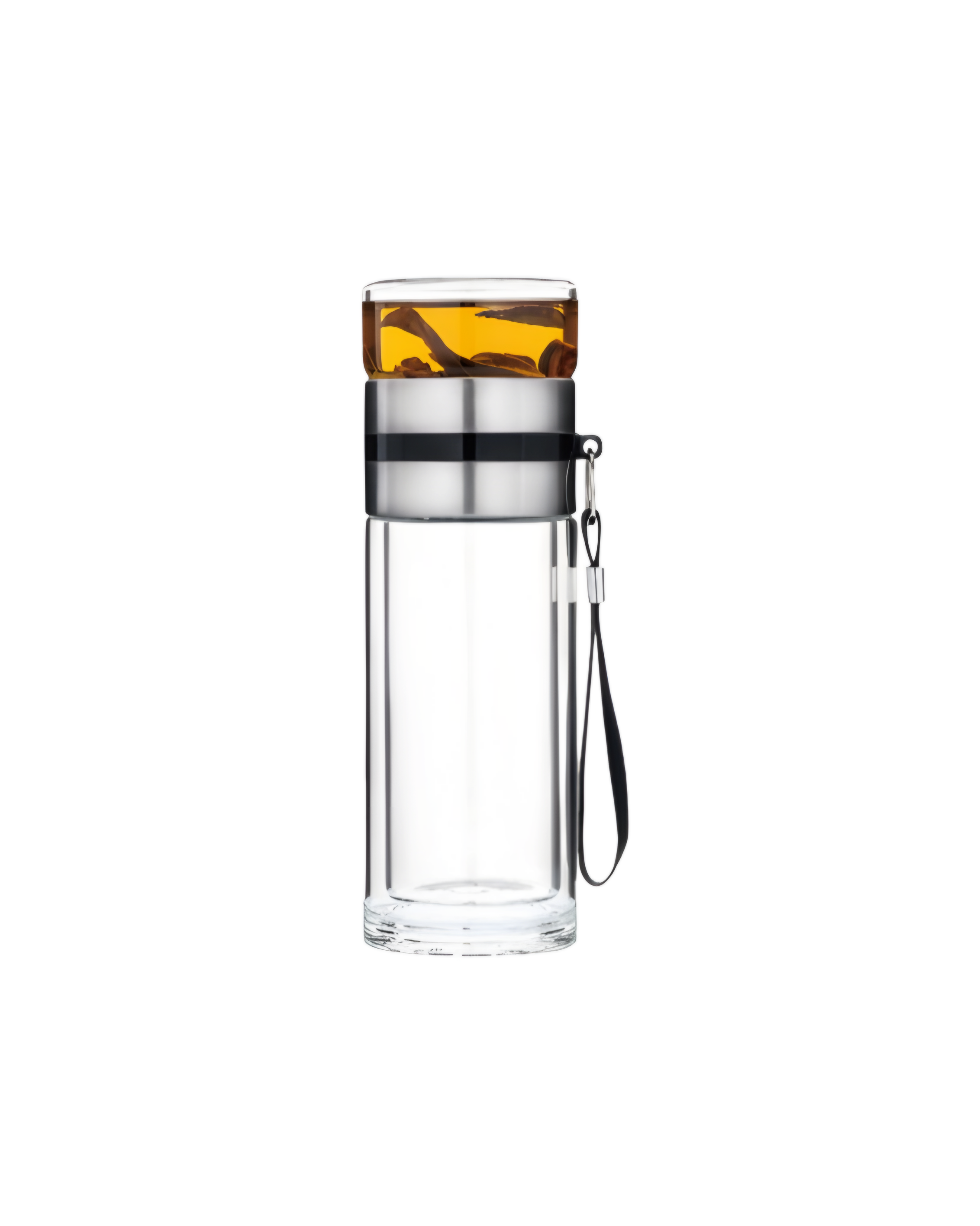 كوب زجاجي حراري مزدوج الجدار بسعة 300 مل، يحافظ على حرارة أو برودة المشروب لفترة أطول مع راحة في الاستخدام.