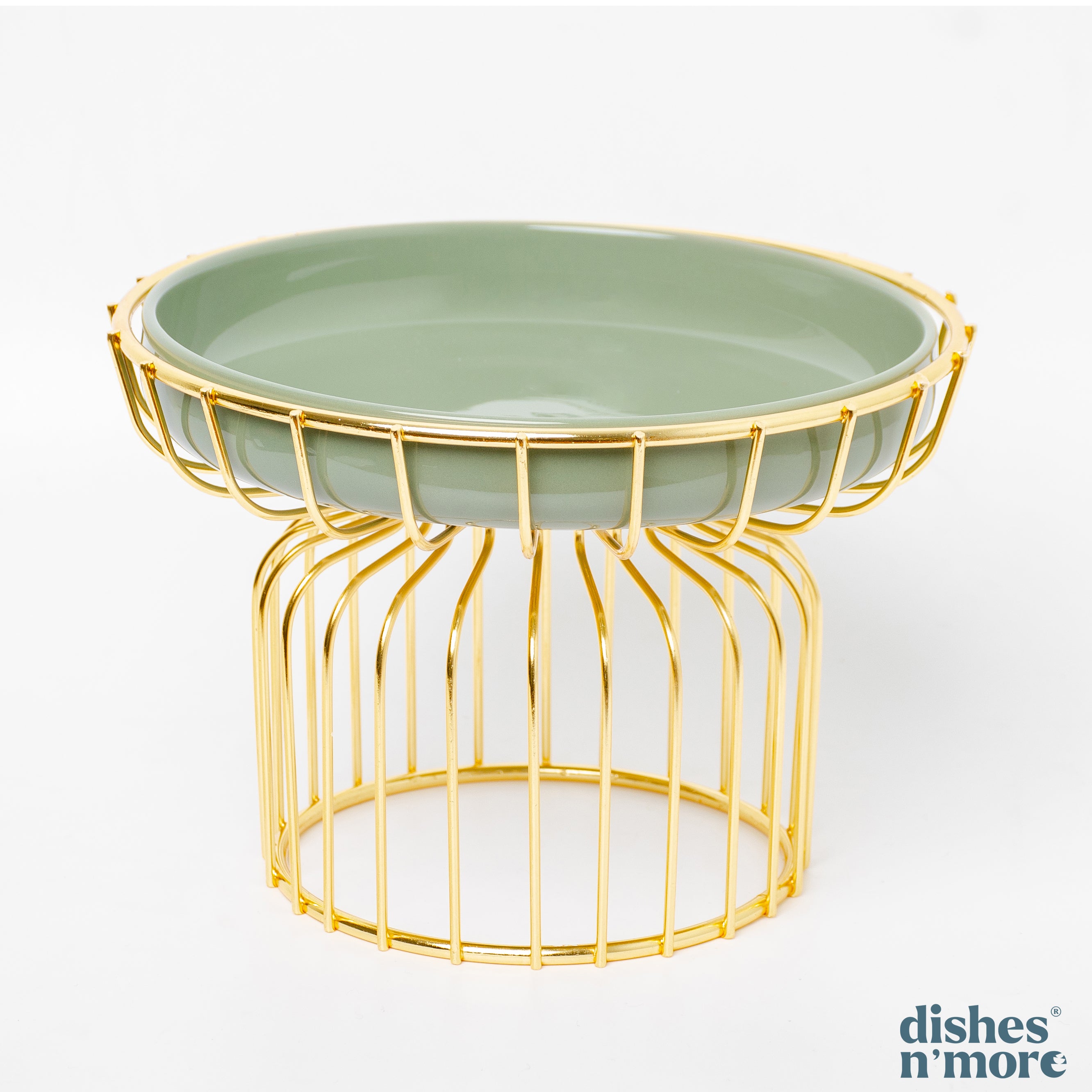 طبق فاكهة على حامل ذهبي اخضر فاتح